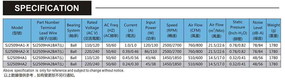 臺灣三巨SJ2509HA2-鐵葉風(fēng)扇
