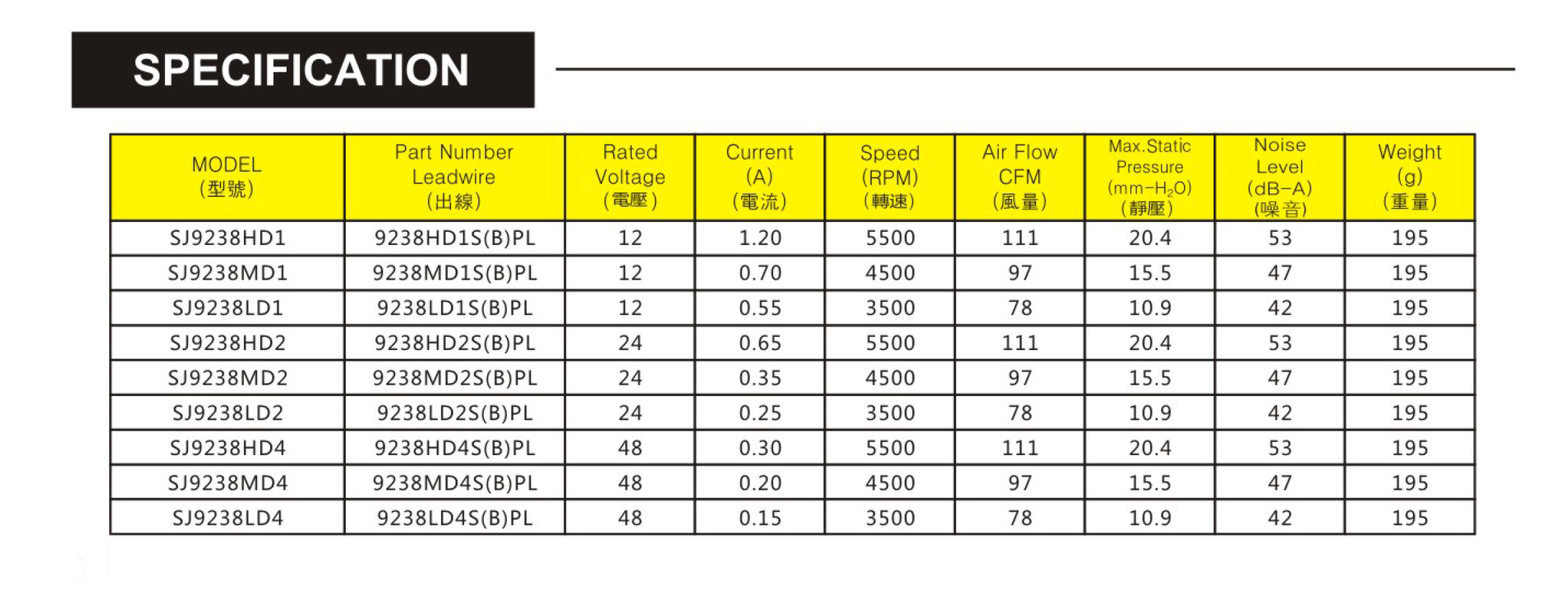 臺灣三巨SJ9238HD2-DC軸流風扇